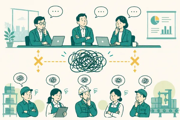 経営の言葉を「紙」で届け、 現場の声を「AI」で集約。 双方向の情報循環が生まれることで、意思決定は現場に浸透し、現場の気づきは経営に届きます。情報が循環する組織は、判断が速く、実行が早い。archは、その循環をつくります。